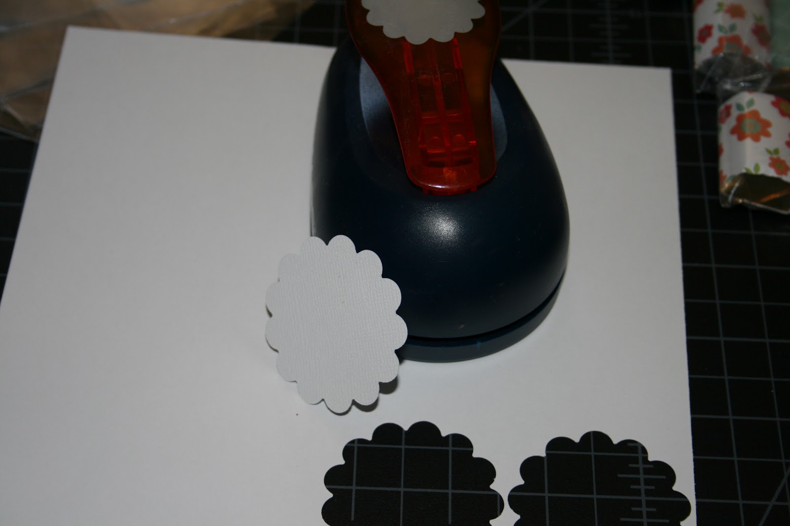 Then I took my 2in. flower shaped punch and punched out 16 flowers out of white cardstock and stamped with a Happy Mother's Day sentiment. To adhear the punch out to the tag, I used a small pop dot, but you could also adhear it with 2-sided tap or adhesive.